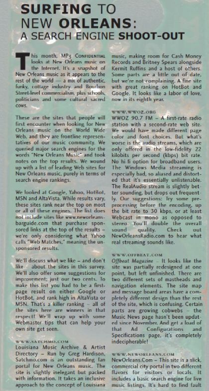 - In the midst of all of this, I also worked for a brief period in the late 1990s as New Media Consultant for OffBeat Magazine.